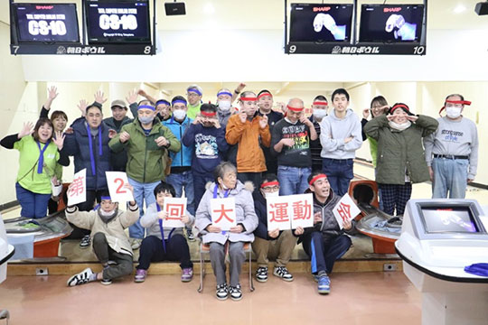 昨年の室内運動会に引き続き、今年はボウリング場で赤チーム、青チームの得点勝負を実施。結果は赤チーム414点、青チーム543点となり、昨年に引き続き青チームの2連勝となりました。