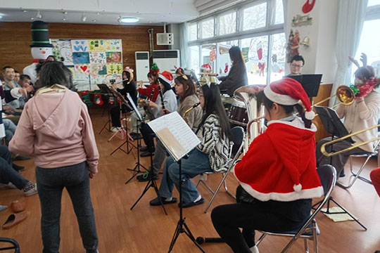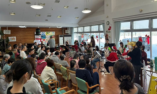 令和7年12月23日(火)。今年も、名寄吹奏楽団様に来て頂いて、クリスマスコンサートを開催しました。 すてきな曲を演奏してもらい利用者の皆さんもノリノリで聴いていました。