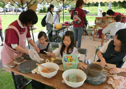 今年、初めてつくった「ふれあい商店街」では、子ども縁日や各団体の販売、体験コーナー、くまさんのバルーンアート、似顔絵など、たくさんのお店が並びました。