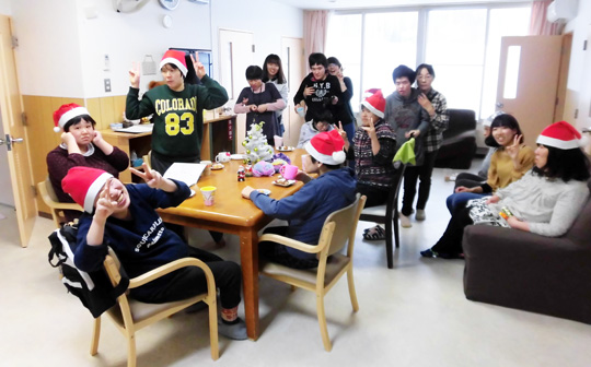 ツリーを飾って…みんなでサンタ帽子をかぶって… サンタさんからプレゼント! 「メリークリスマス!!」 ケーキは本番までとっておいて、ドーナッツとジュースをいただきました。 花より団子ならぬ、プレゼントよりドーナッツ! プレゼントよりもドーナッツが嬉しそうなのは気のせいでしょうか?笑